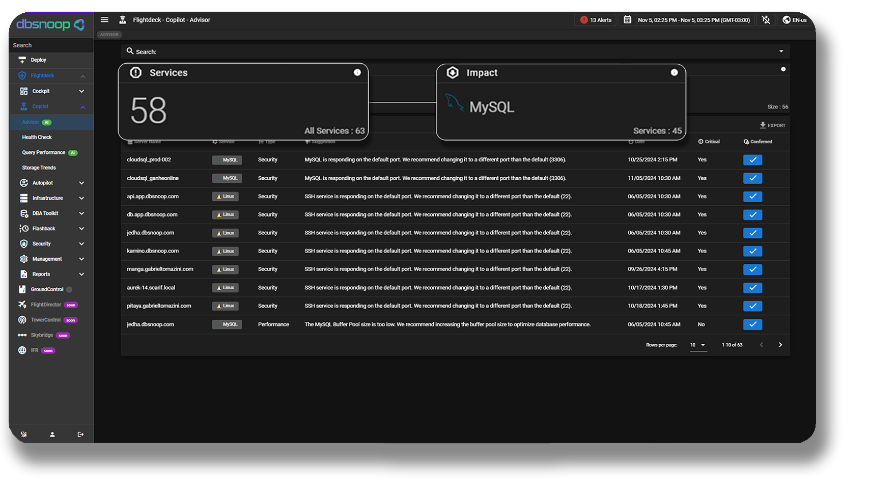 Flightdeck SMART is the evolution of observability. It delivers everything that Flightdeck ONE already offers — with an added layer of artificial intelligence, machine learning, and a Copilot that acts as your virtual DBA 24/7.